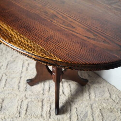 Victorian Eastlake Pedestal Table This side table was partially refinished. The top was repaired and refinished gently to maintain the patina. Category: Custom Work Date: August 4, 2025